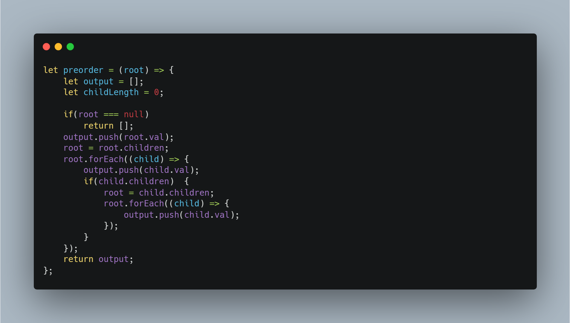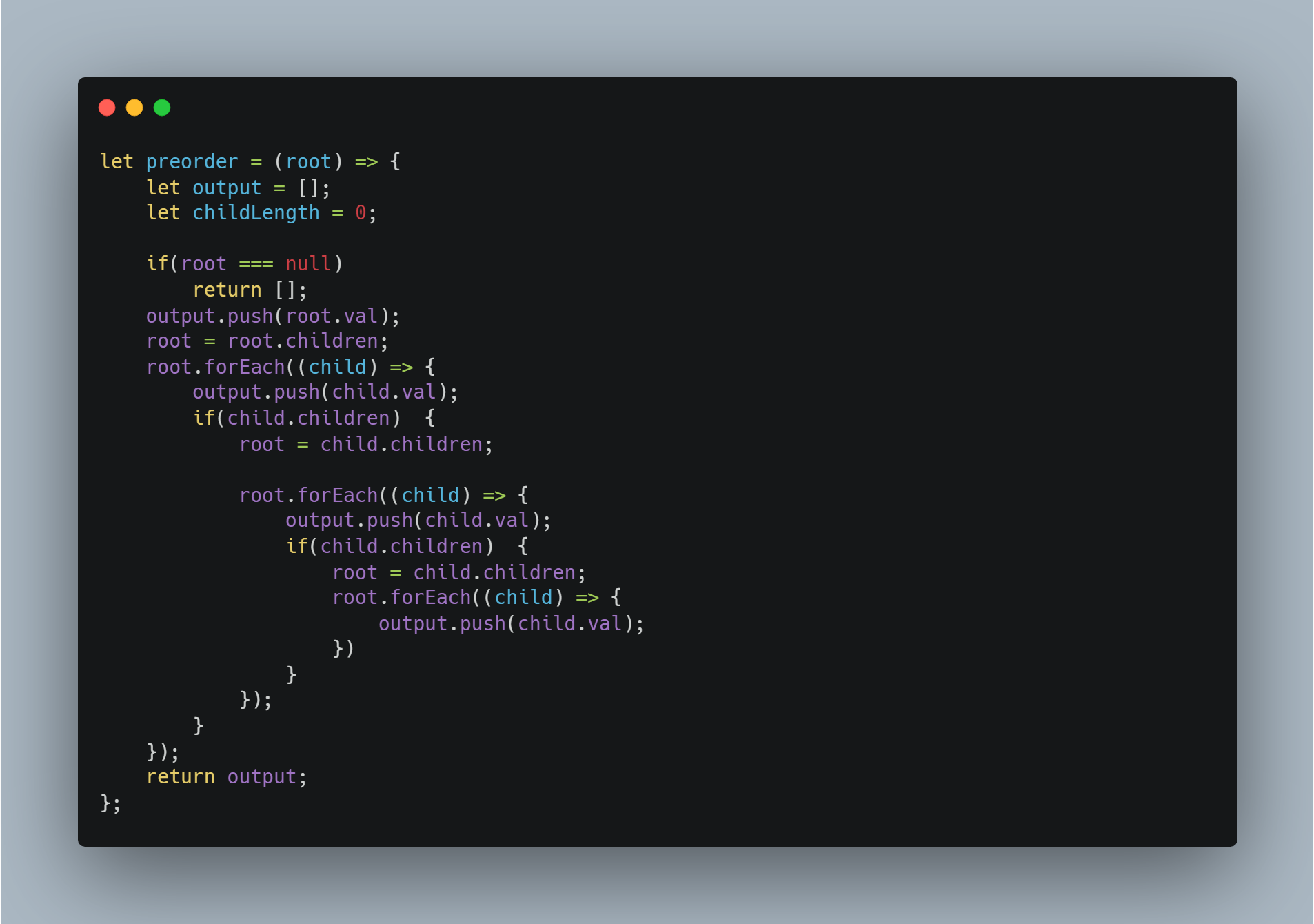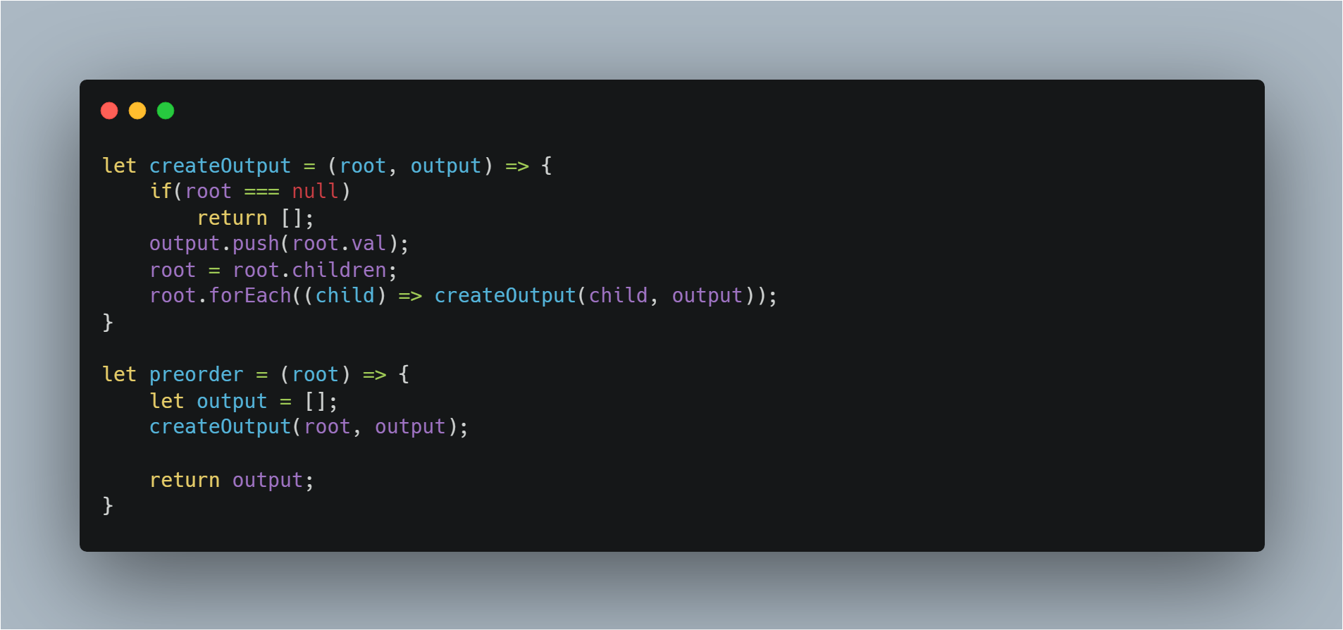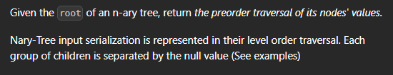 자식 노드가 2개 이상이 올 수 있는 트리가 주어진다. 전위순회를 통해 노드의 값을 반환해야한다.