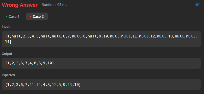 root 가 [] 인 경우에 막혔던 것이였다. 이때 if(root.length === 0) 이면 null 인 경우까지 한번에 체크가 되는줄 알았는데 아니였다.