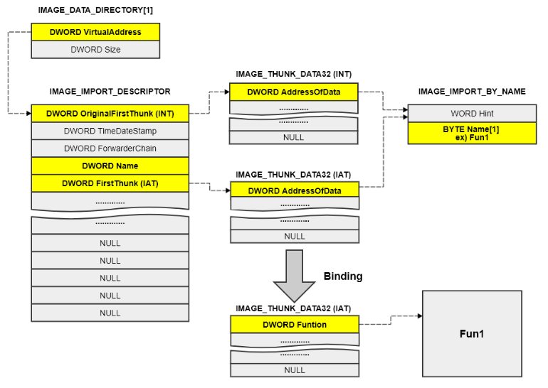 IAT (Import Address Table) PE Header 를 처음 배울때 최대 장벽은 IAT(Import Address Table) 입니다. IAT 에는 Windows 운영체제의 핵심 개념인 process, memory, DLL 구조 등에 대한 내용이 함축되어 있습니..