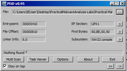 UPX가 뭔진 모르겠지만, UPX로 감싸 져 있다는 것을 알 수 있다. (이를 패킹이라 부른다.)