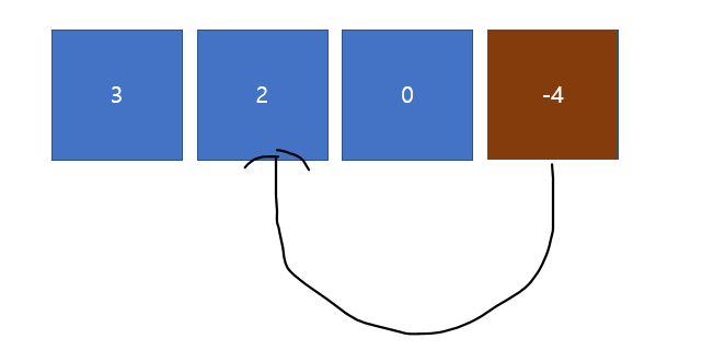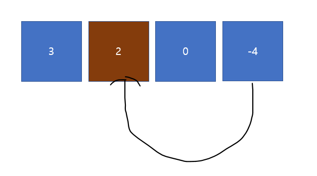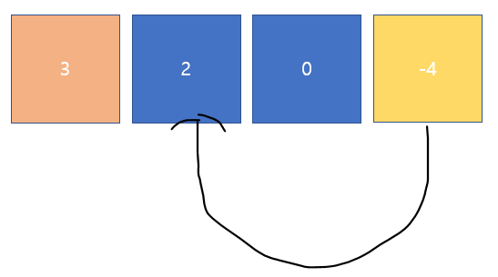 Input : head = [1,2,3,4], pos = 1라고 한다고 했을 때