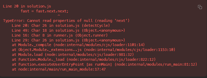 (fast나 fast.next나 결국은 순환이라 null을 만날 일이 없을 텐데 라는 생각이 머릿속에 계속 맴돌았는데...)